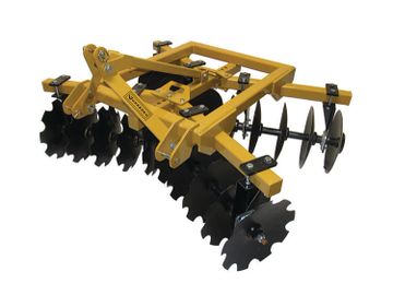 Tandem Disc is an ideal choice for landscaping, gardening, small acreage, or general tillage. Features #' heavy tubing, 1/2" thick bearing hangers with reinforcement, 1" square gang bolts with triple sealed self aligning bearings, 7 1/2" disc blade spacing, 7, 14, 21 degree settings.